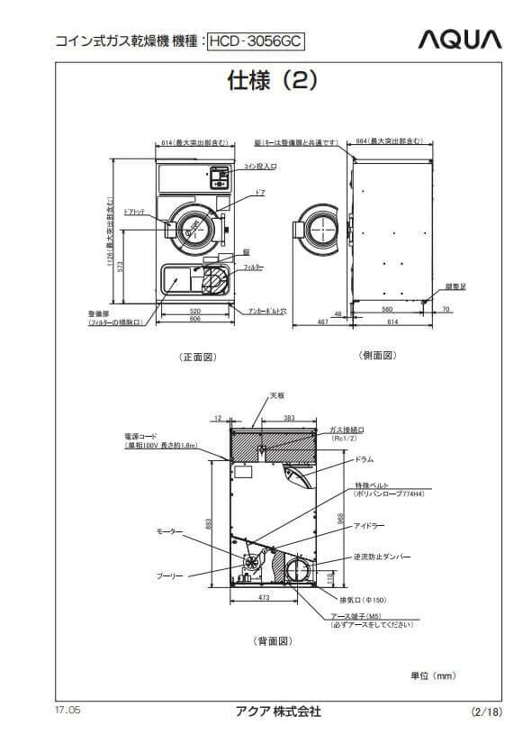 【アクア安心サポート保証5年付き】コイン式小型ガス乾燥機HCD-3056GC