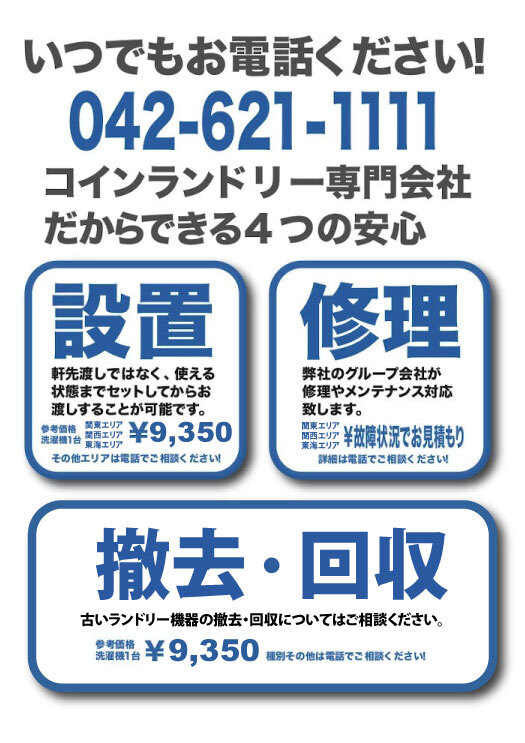 コイン式洗濯機・乾燥機をお求めやすい価格でご提供いたします。