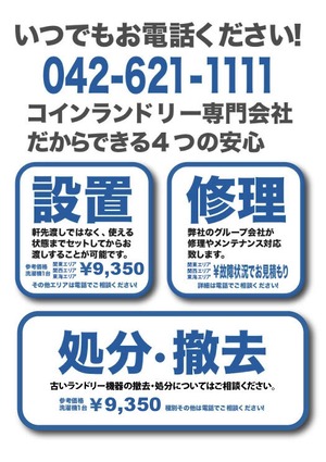 コイン式洗濯機・乾燥機をお求めやすい価格でご提供いたします。